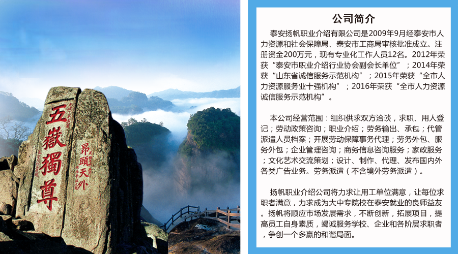 【招聘公告】泰安揚帆職業介紹有限公司某國有企業招聘簡章 [2025-10-10]